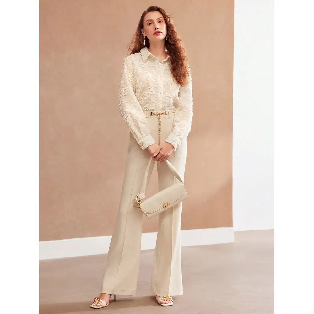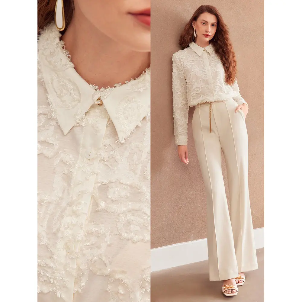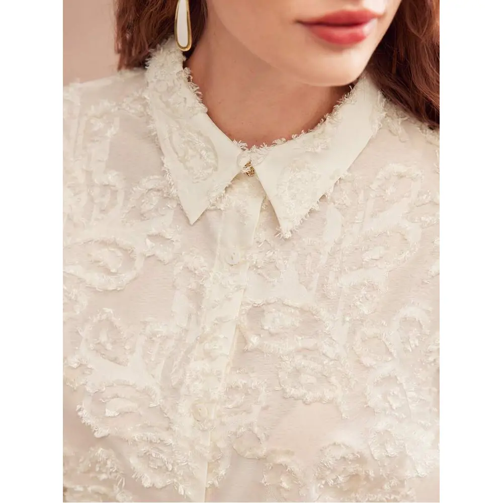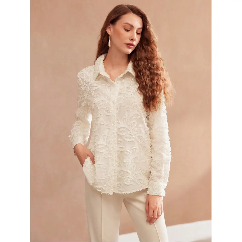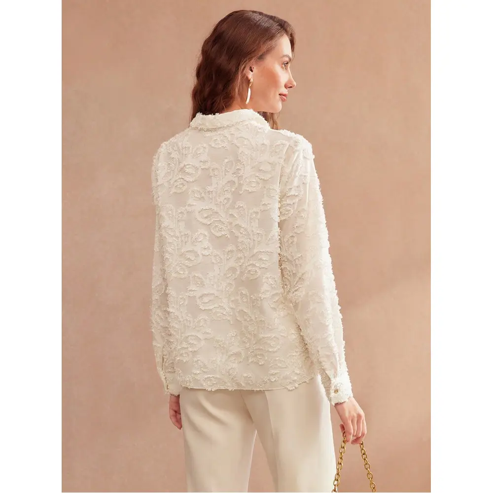 Moft Blusa de jacquard con detalle floral y diseño sofisticado
